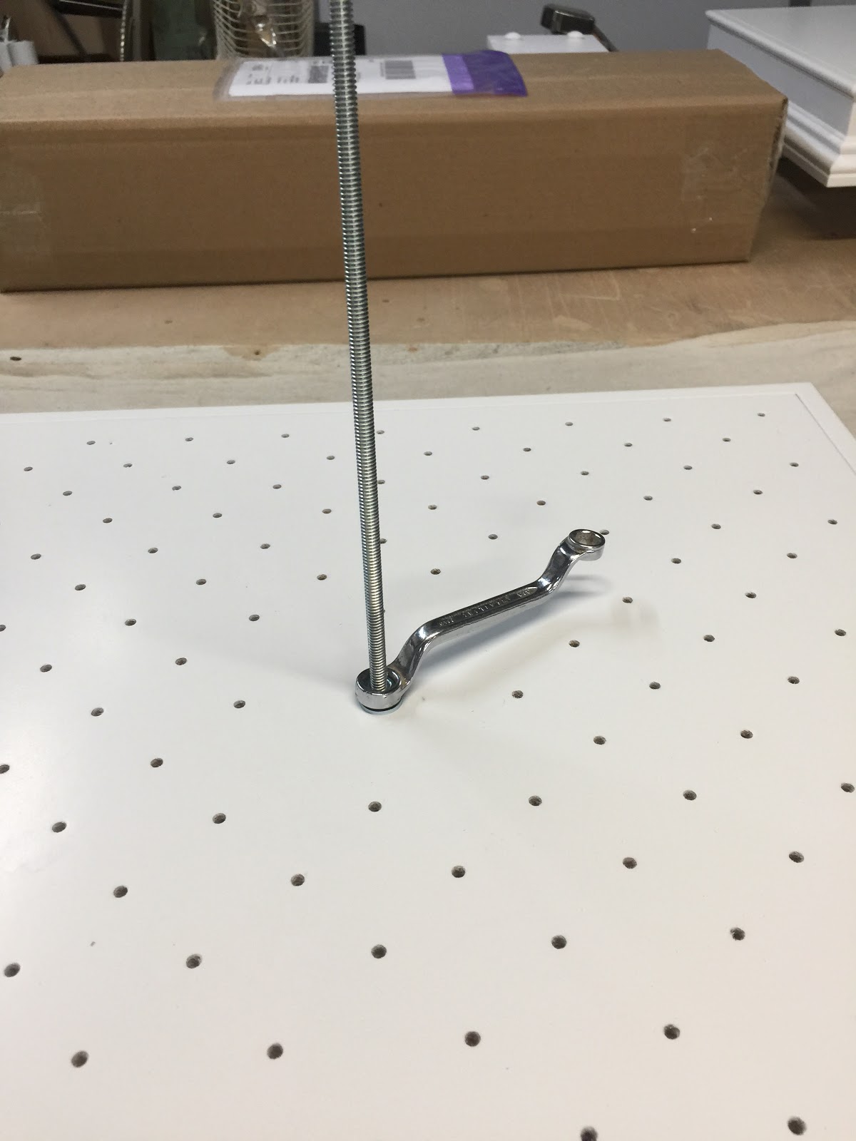 First, find the support rod. They have a nut and washer pre installed on it and I have wrapped a piece of tape around them to keep them in place. They are at a preset position. DO NOT TAKE THEM OFF.